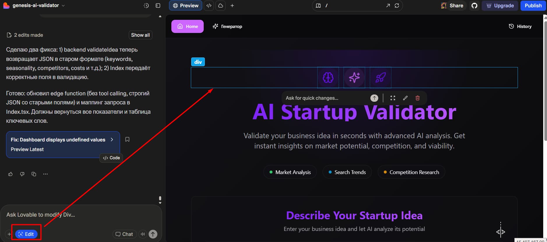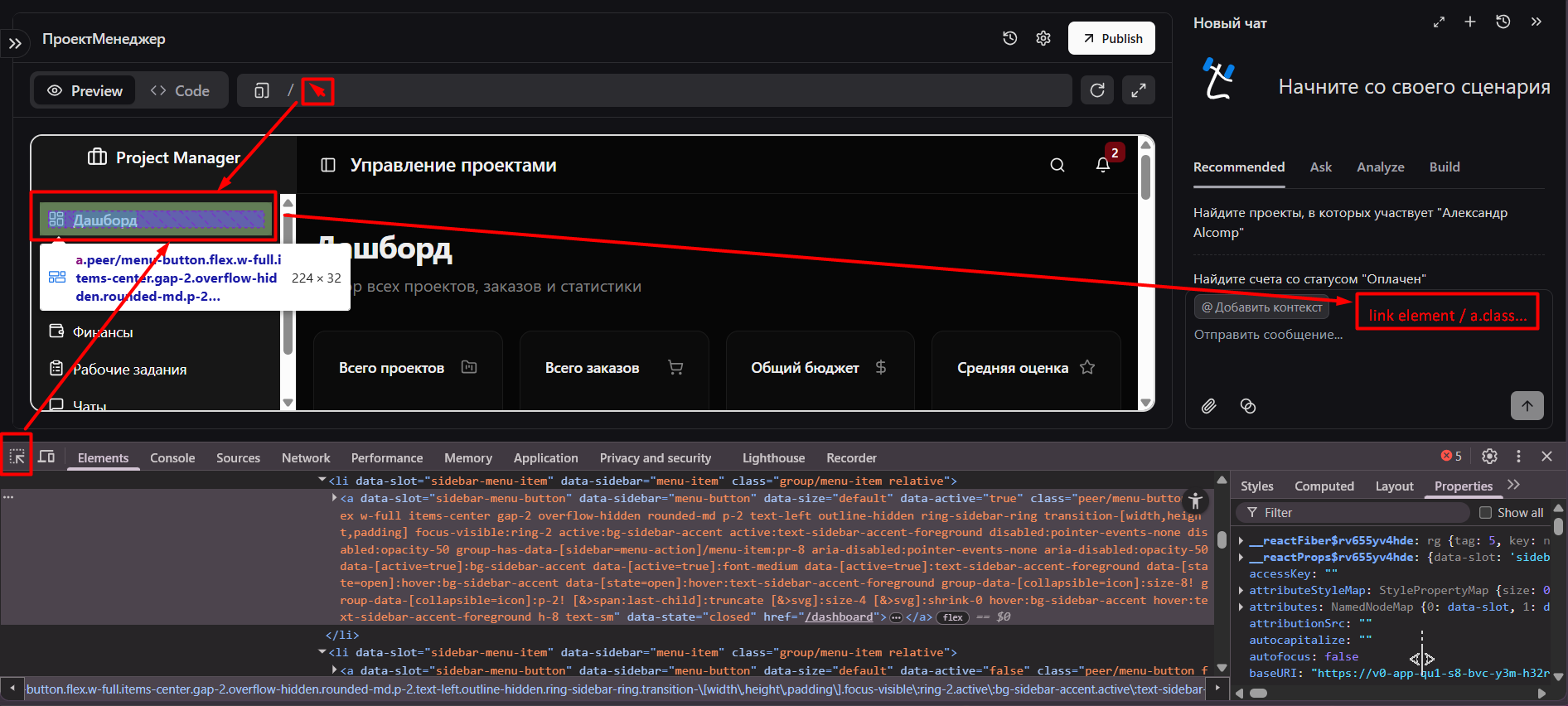 There is now a wonderful feature for creating web applications using AI. But, as I mentioned in another request for a new feature, it is difficult for non-programmers to edit code manually. It is also difficult to describe a small part of the code (for example, a container, header, widget, form field, icon, button, etc.) in the AI dialogue chat so that it understands exactly which element I want to change without affecting the rest of the code. Therefore, I suggest adding a visual highlighting (selection) feature for parts of the code to be added to the AI chat context (currently, only tables and their views can be added to the context).